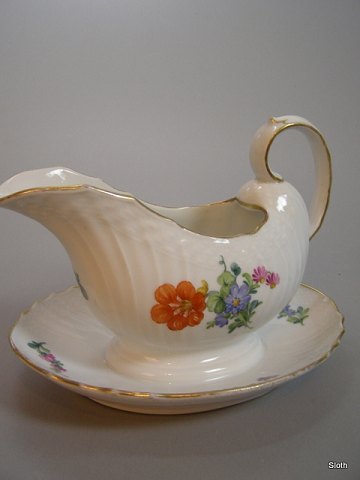 R.C. 493/1649 Let saksisk Blomst Sauceskåle 2. Sort. guld let slidt L:26 cm. H: 9 cm.
