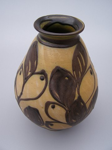 Vase af glaseret lertøj, Hermann A. Kähler, h:26cm.