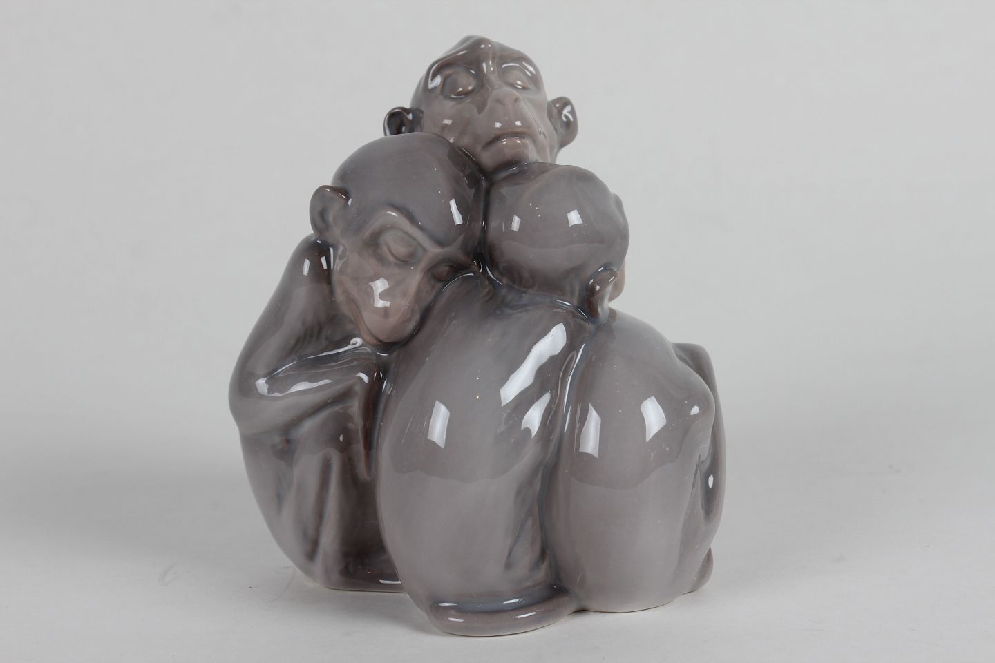 Bing & Grøndahl figurer Sovende abefamilie nr. 1581 tegnet af Ingeborg Plockcross Irminger Højde 12 cm Fin fejlfri 1. sortering