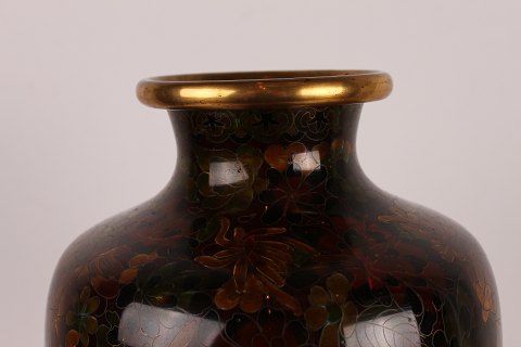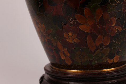 Old Vase with cloisonné decoration on stand made of wood (with defects) Height without stand 32 cm - diameter 18 cm Nice used condition