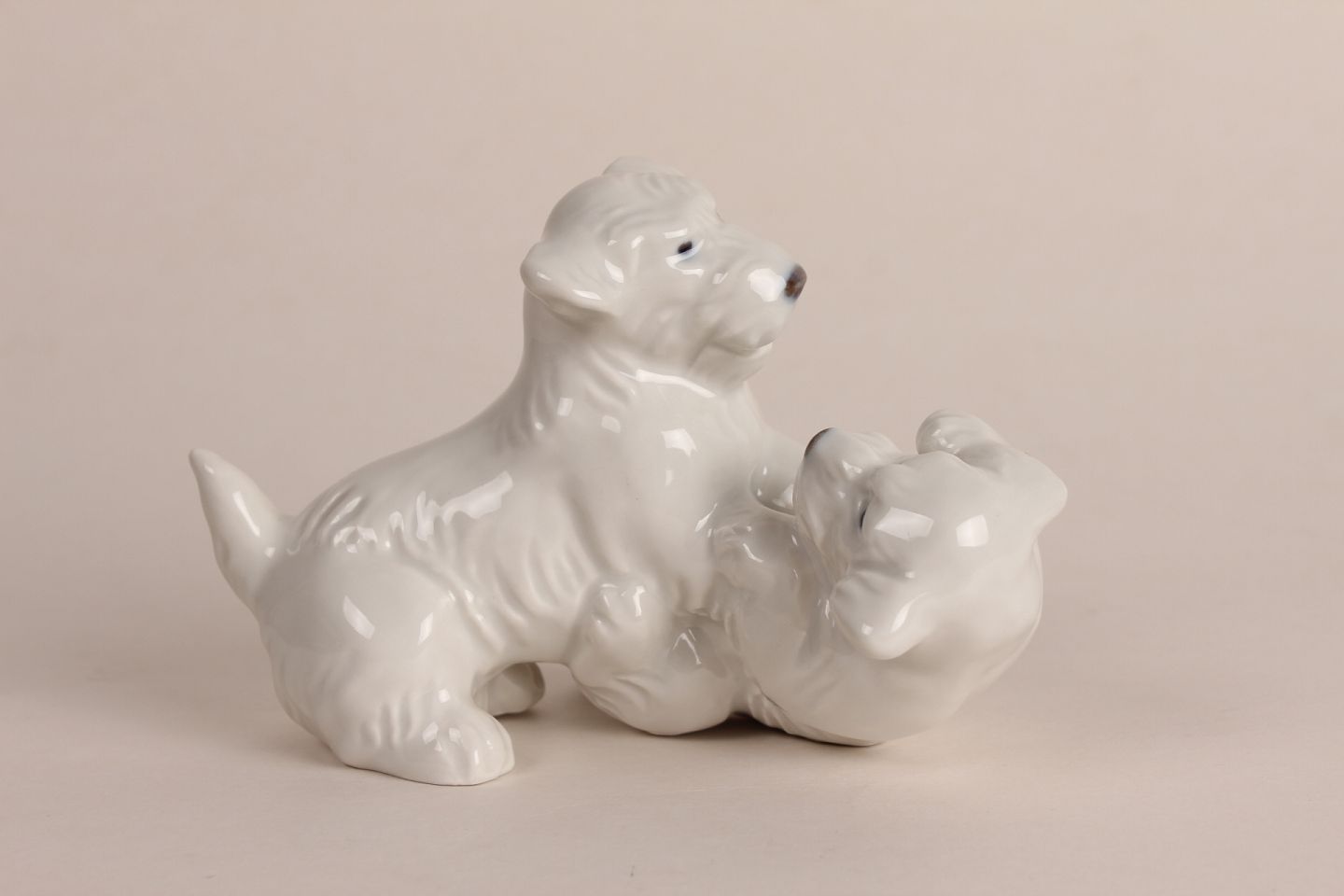 Bing & Grøndahl Figurer 2 legende hundehvalpe nr. 20231 tegnet af Knud Kyhn Længde 11,5 cm - højde 8 cm 1. sortering - fin fejlfri stand