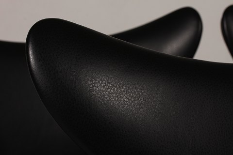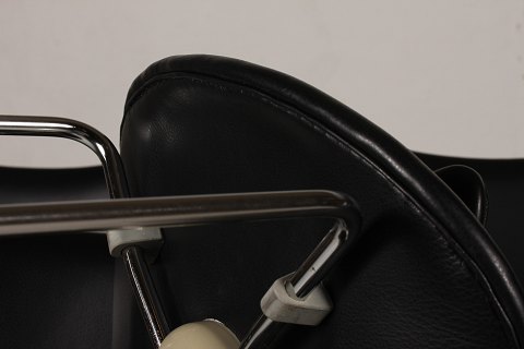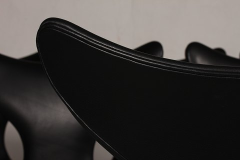Arne Jacobsen (1902-1971) Stacking Chair no 3108 "Liljen" Manufactor: Fritz Hansen A/S With new black leather Height: 79 Seatheight 45 cm Width 50 cm Depth 47 cm Very good condition with new leather
