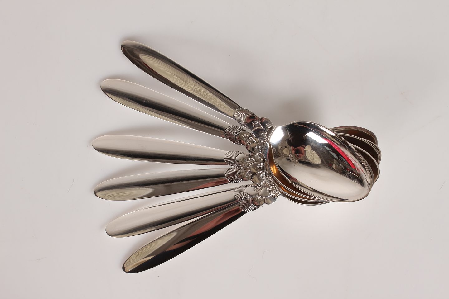Georg Jensen Silver Cactus cutlery made of sterling silver after design by Gundorph Albertus in 1930 Large Soup spoons Length 20 cm With stamp from the period 1930-45 Nice vintage condition
