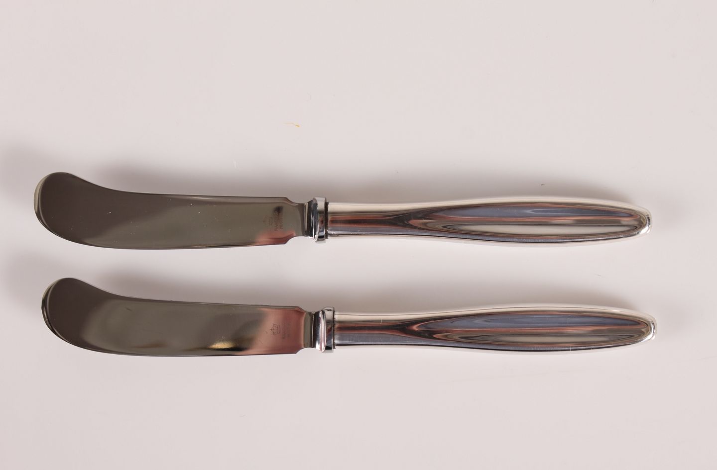 Jeanne Grut (1927-2008) Jeanne Bestik Sterling sølvbestik formgivet i 1956 af Jeanne Grut for Slagelse Sølvsmedie Smørknive Længde 17 cm Rigtig fin stand uden inskription