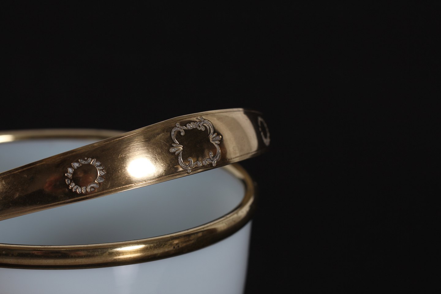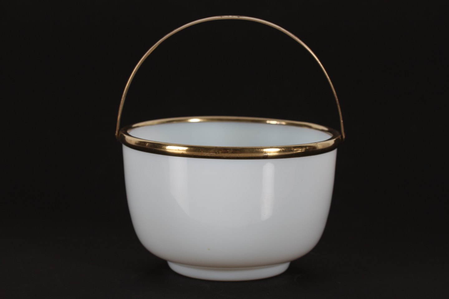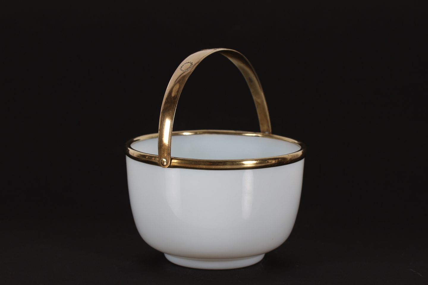 af mundblæst mælkehvidt glas med hank af messing