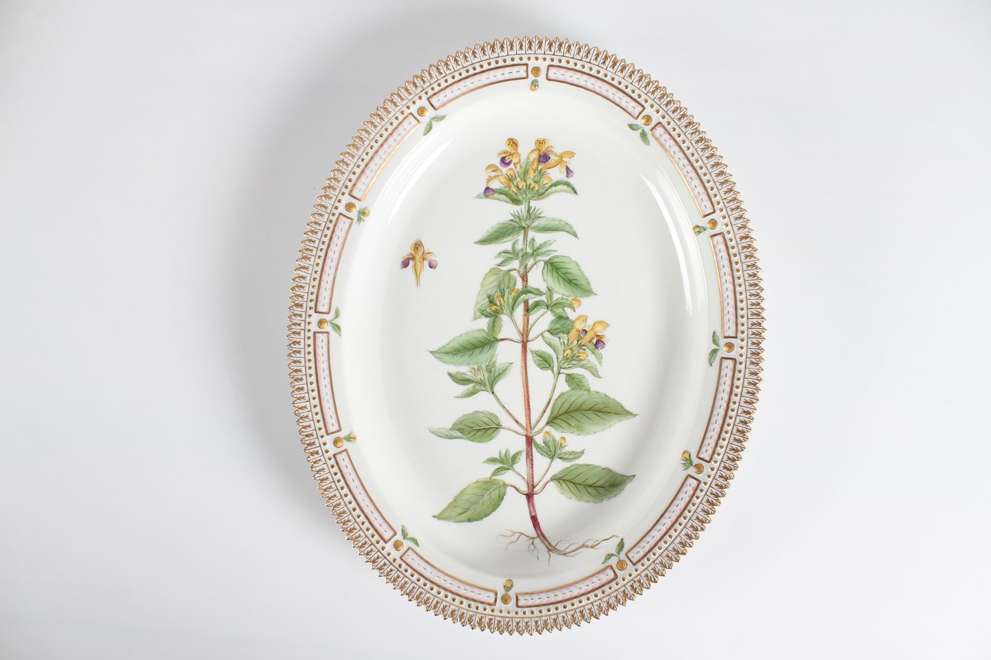 Large oblong serving Dish model 3517 with flower decoration"Galeopsis Versicolor Curt."