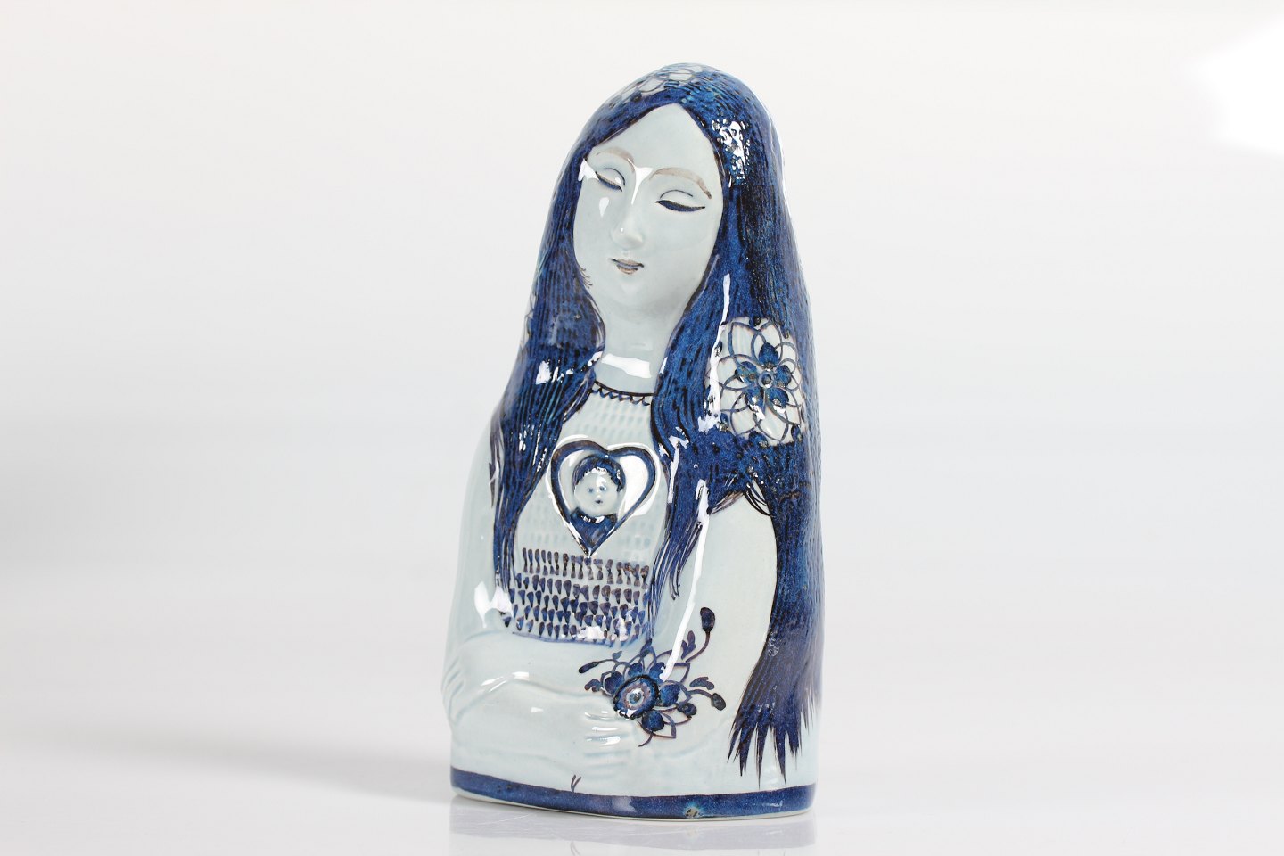 Royal Copenhagen & Aluminia Faience Bust 312/3560 of a young girl with a child boy ín her heart by Doreen Middelboe Height: 20 cm 1. quality - with tiny grazing No chips or cracks.
