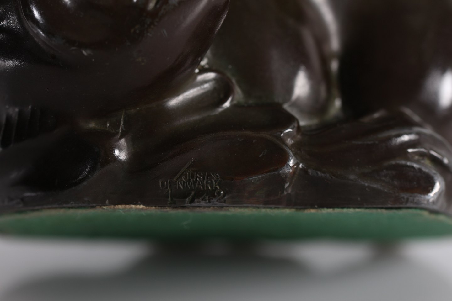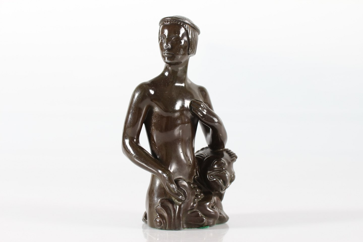 Just Andersen (1884-1943) Young man with fish Dessin no. 1742 made of disco metal with patina Height 22,5 cm Good vintage condition with beautiful patina - see image of tiny scratches