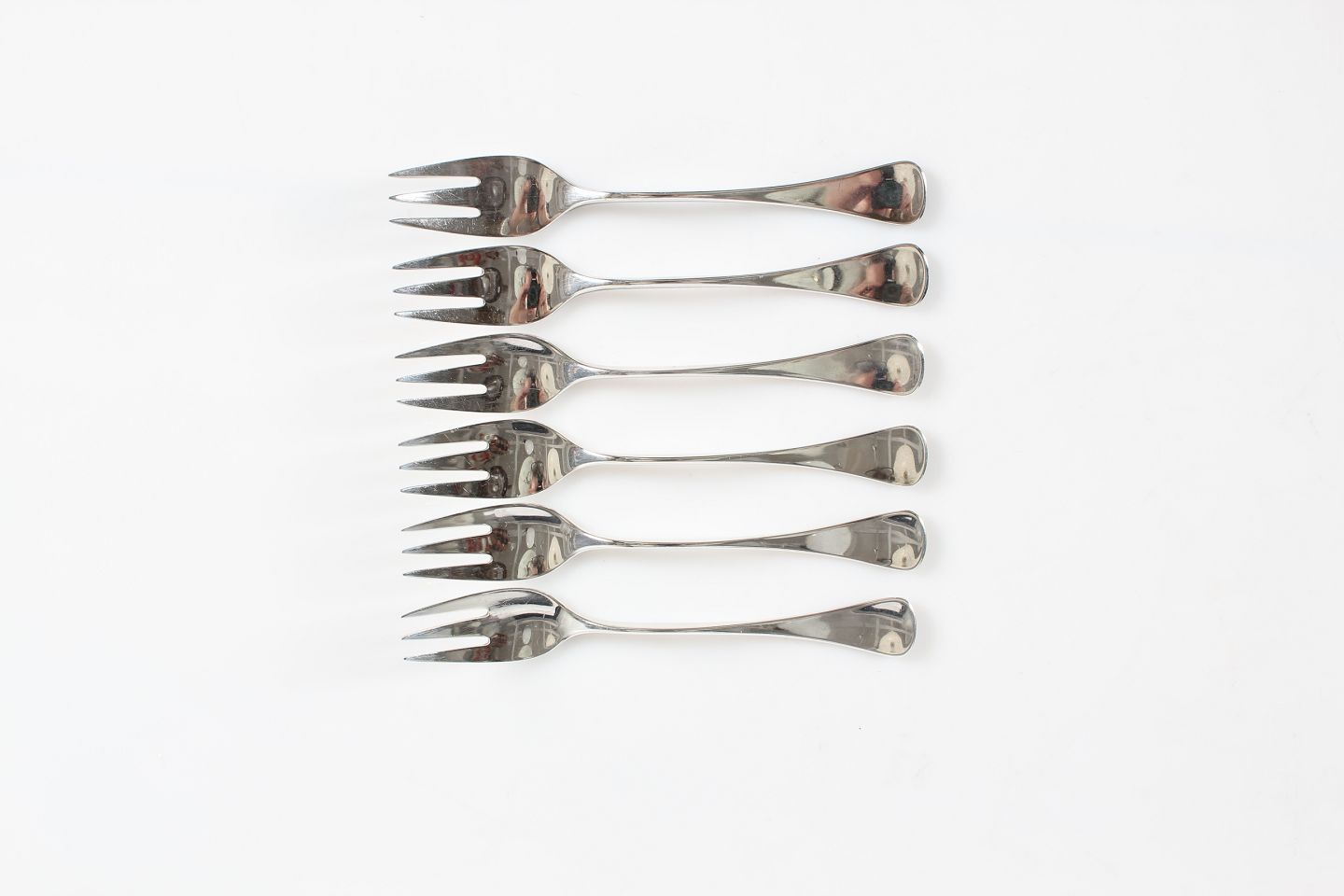 Patricia Silver Flatware Patricia Flatware after design by Knud Møller made at Horsens Sølvvarefabrik Cake forks Length 13 cm Nice vintage condition without engraving