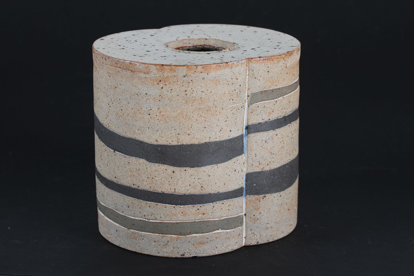 Richard Manz (1933-1999) Rustic stoneware vase unglazed with matte black/grey decoration Height 16 cm Width 18,5 cm Depth 14,5 cm Stamped Richard Manz made in Denmark Nice condition - see photo of small chip