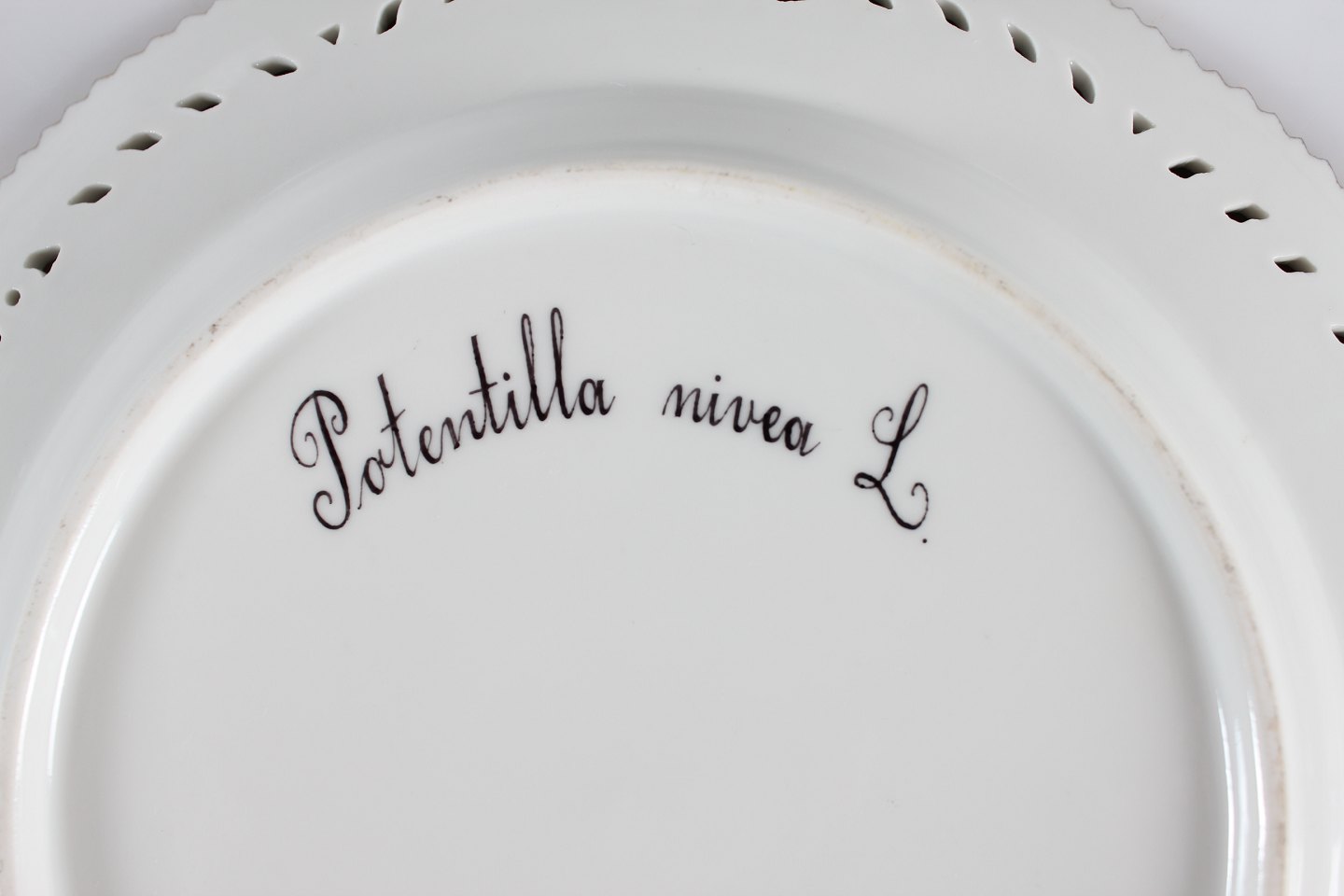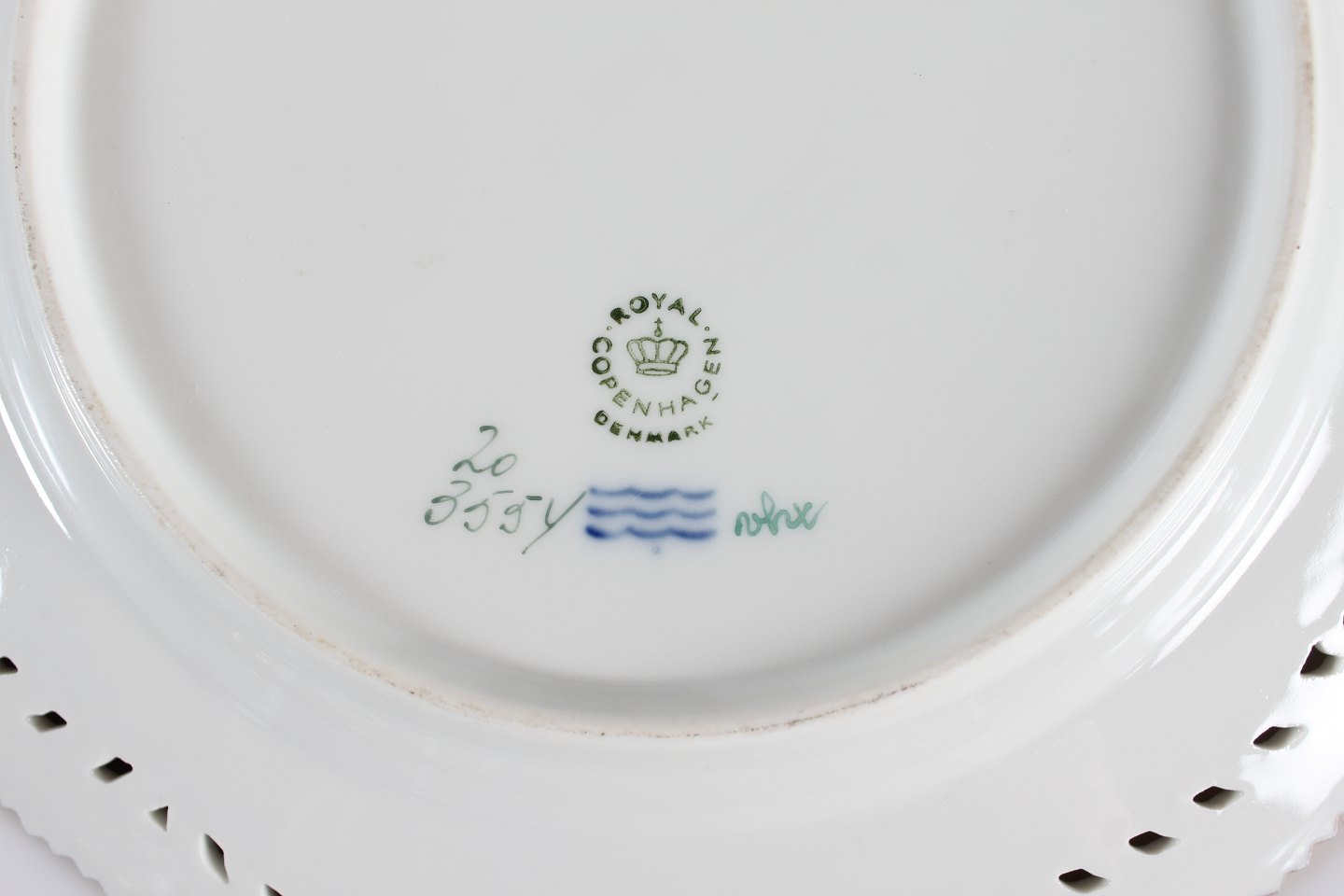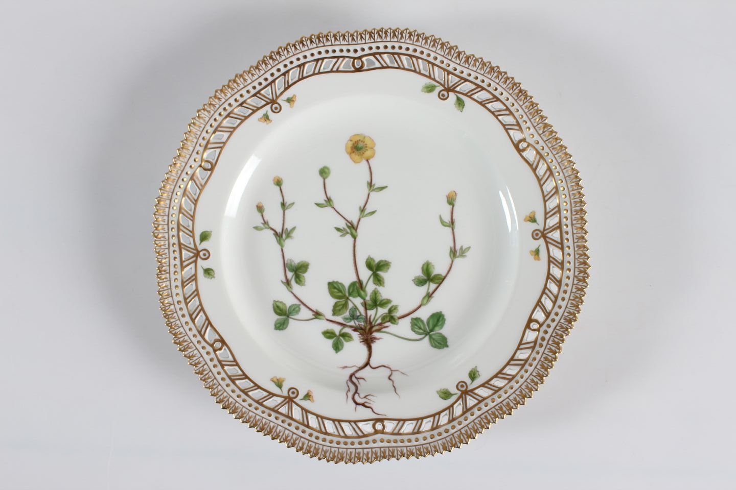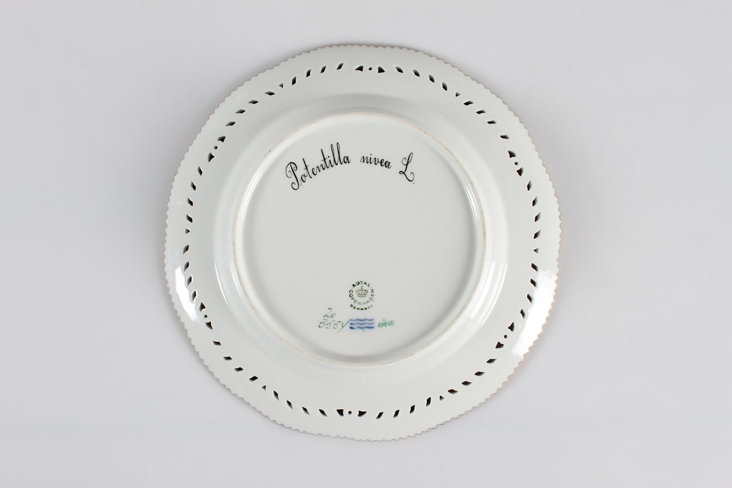 Royal Copenhagen Flora Danica Frokosttallerken med gennembrudt og takket kant model nr. 3554 Dekoreret med blomst "Potentilla Nivea L." Diameter 23 cm Fin fejlfri 1. sortering
