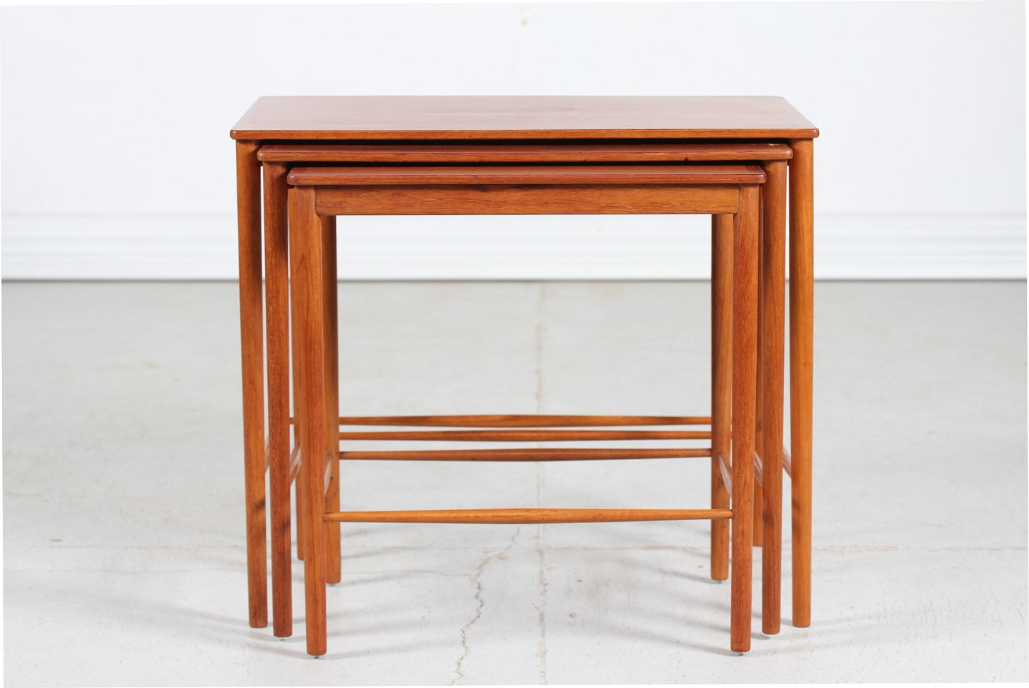 Kaj Winding A set of nesting tables made of solid and veneer teak Manufacturer: PJ Møbler Height 50 cm Width 57 cm Depth 37 cm Nice vintage condition ready for use