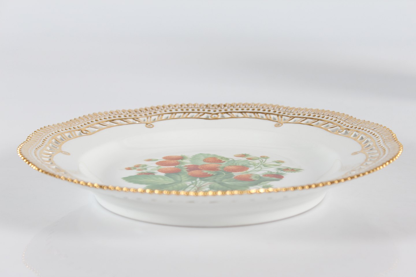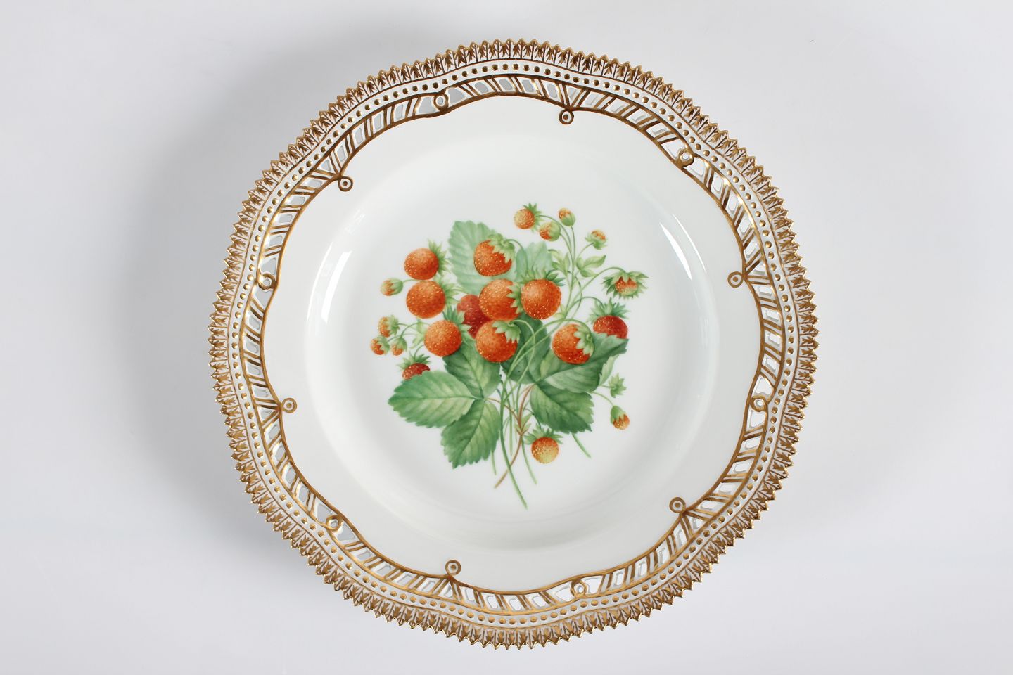 Royal Copenhagen Flora Danica Plate no. 429/3535 with open work rim With stamp from 1964 Decorated with wild strawberries Diameter 25,5 cm Mint condition - factory 1