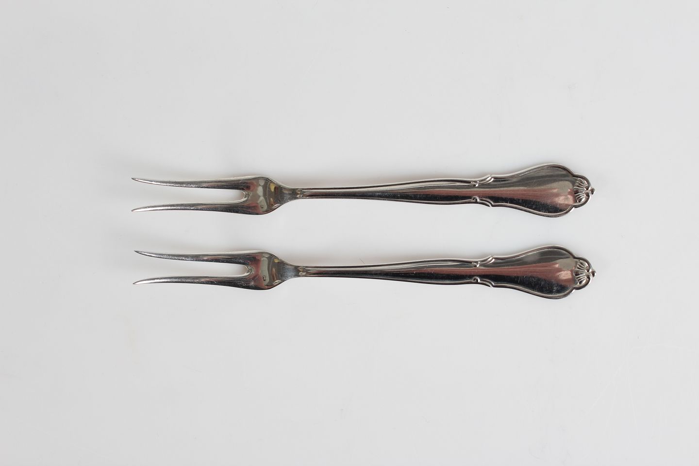Ambrosius Sølvbestik Ambrosius sølvbestik 830s fremstillet hos Cohr Pålægsgafler Længde 15 cm Fin stand uden gravering