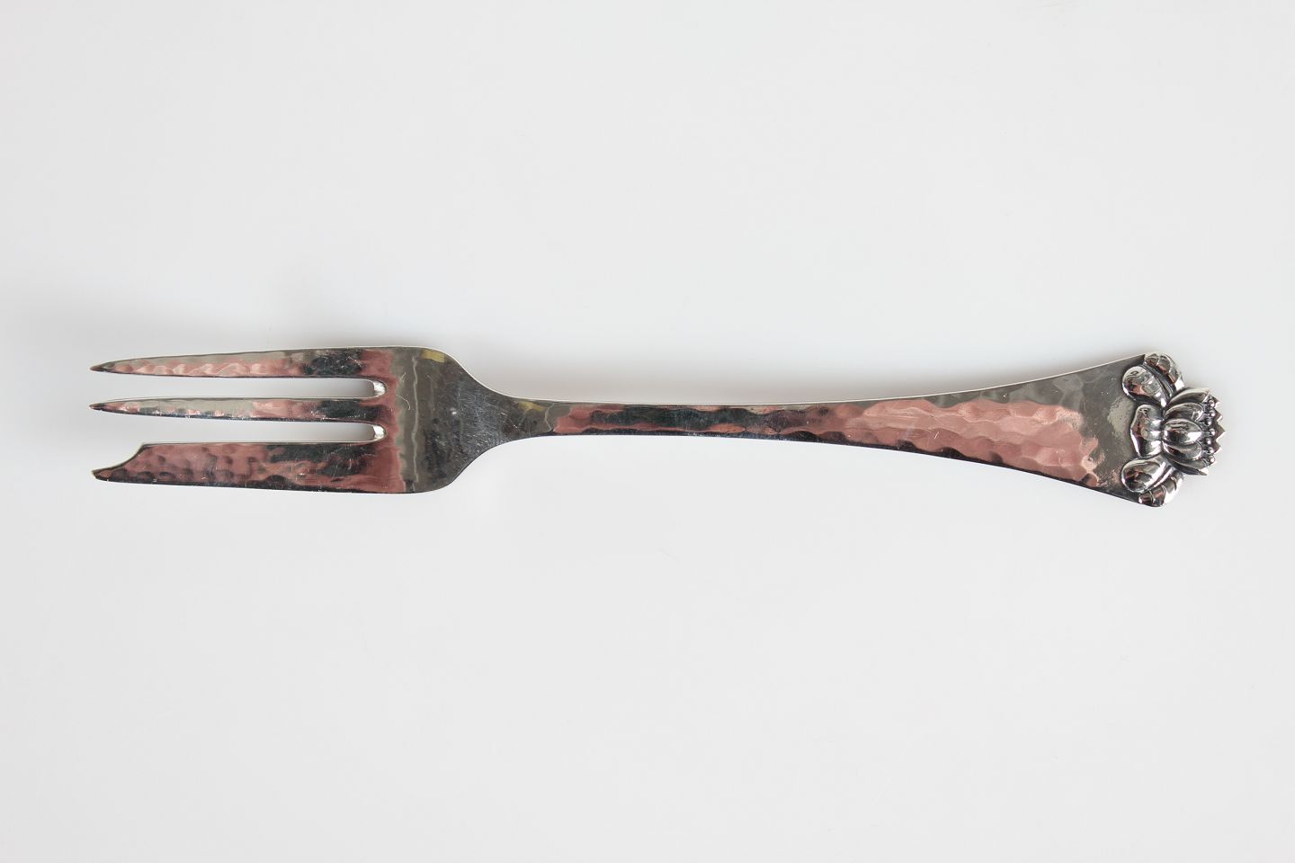 Åkande Sølvbestik Hans Hansen og andre sølvsmede 3-tårnet sølvbestik Kagegaffel Længde 15 cm Fin stand uden indgraveringer