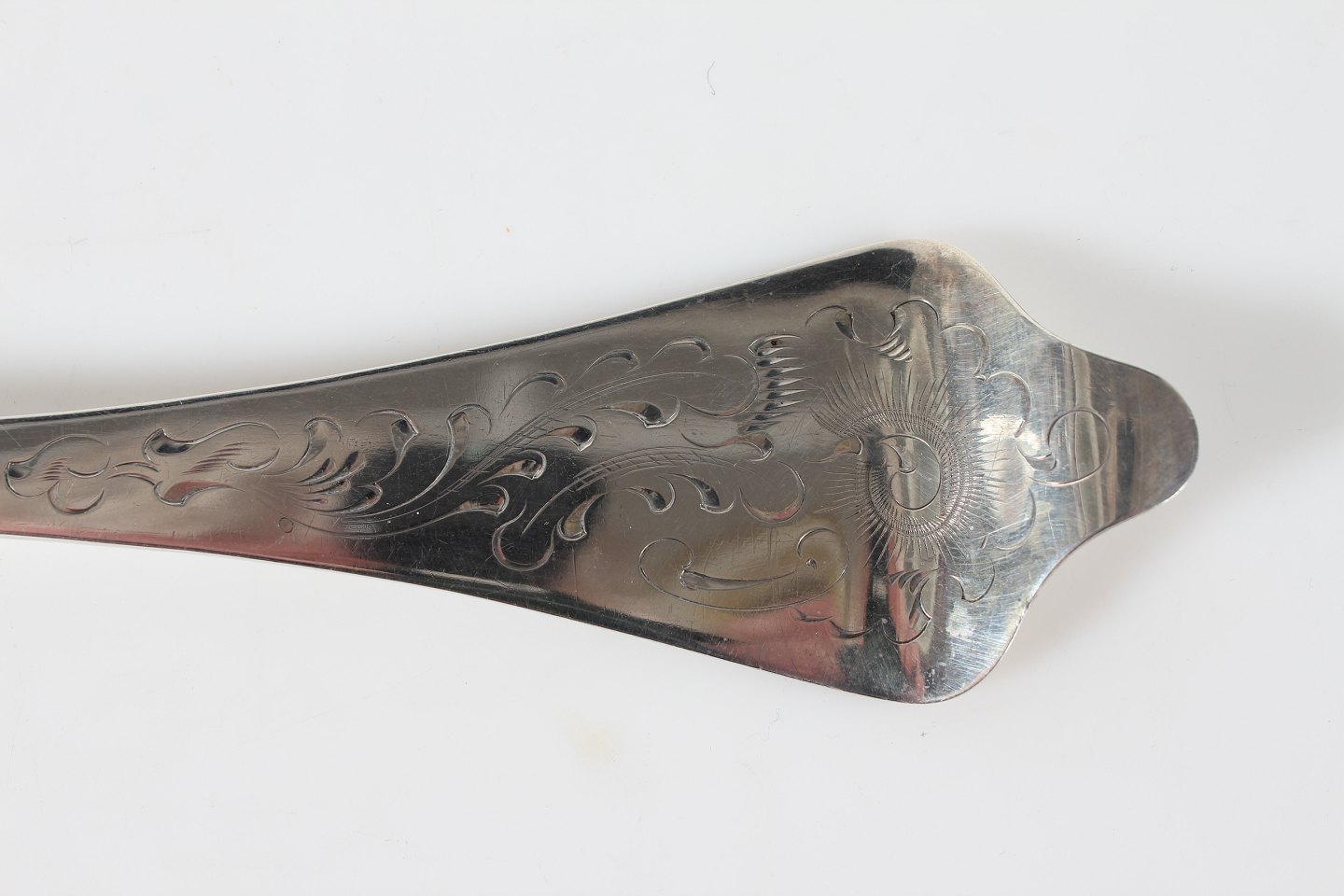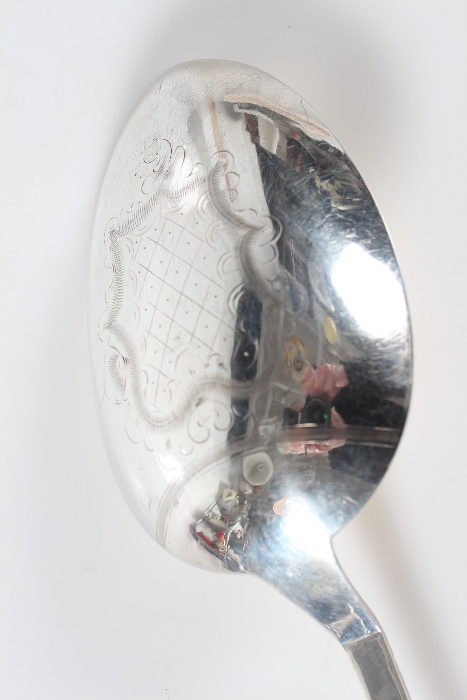 Antik Rococo Sølvbestik Antik Rococo bestik af 3 tårnet ægte sølv fremstillet af blandt andre Fredericia Sølvindustri Stor potageske med håndgravering Længde 35 cm Fin stand uden navnetræks indgraveringer