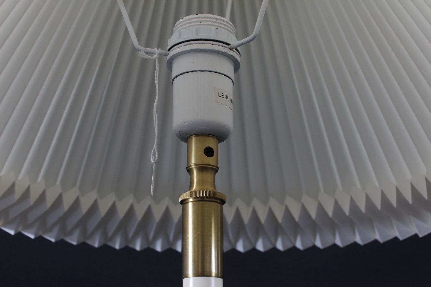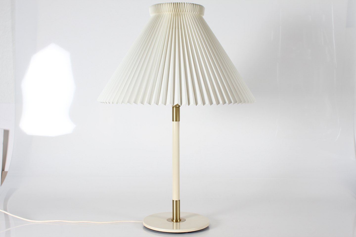 Le Klint + Aage Petersen Table lamp designed by Aage Petersen in 1970. Model 352 with white lacquer and the original shade Adjustable height 65-90 cm Diameter shade ca. 47 cm Nice condition with full function