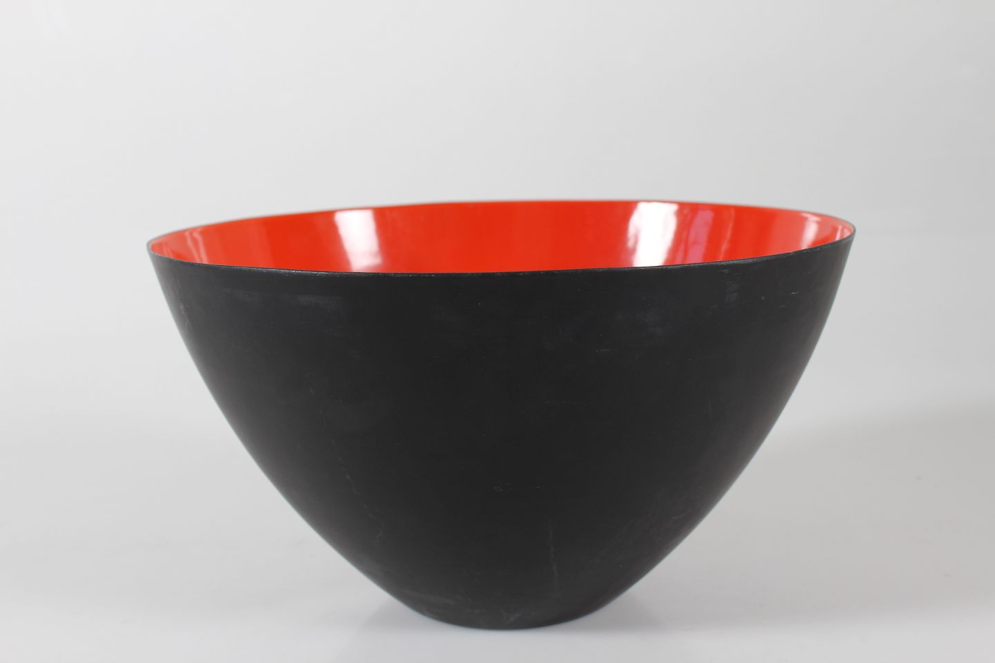Orangerød og sort-emaljeret skål