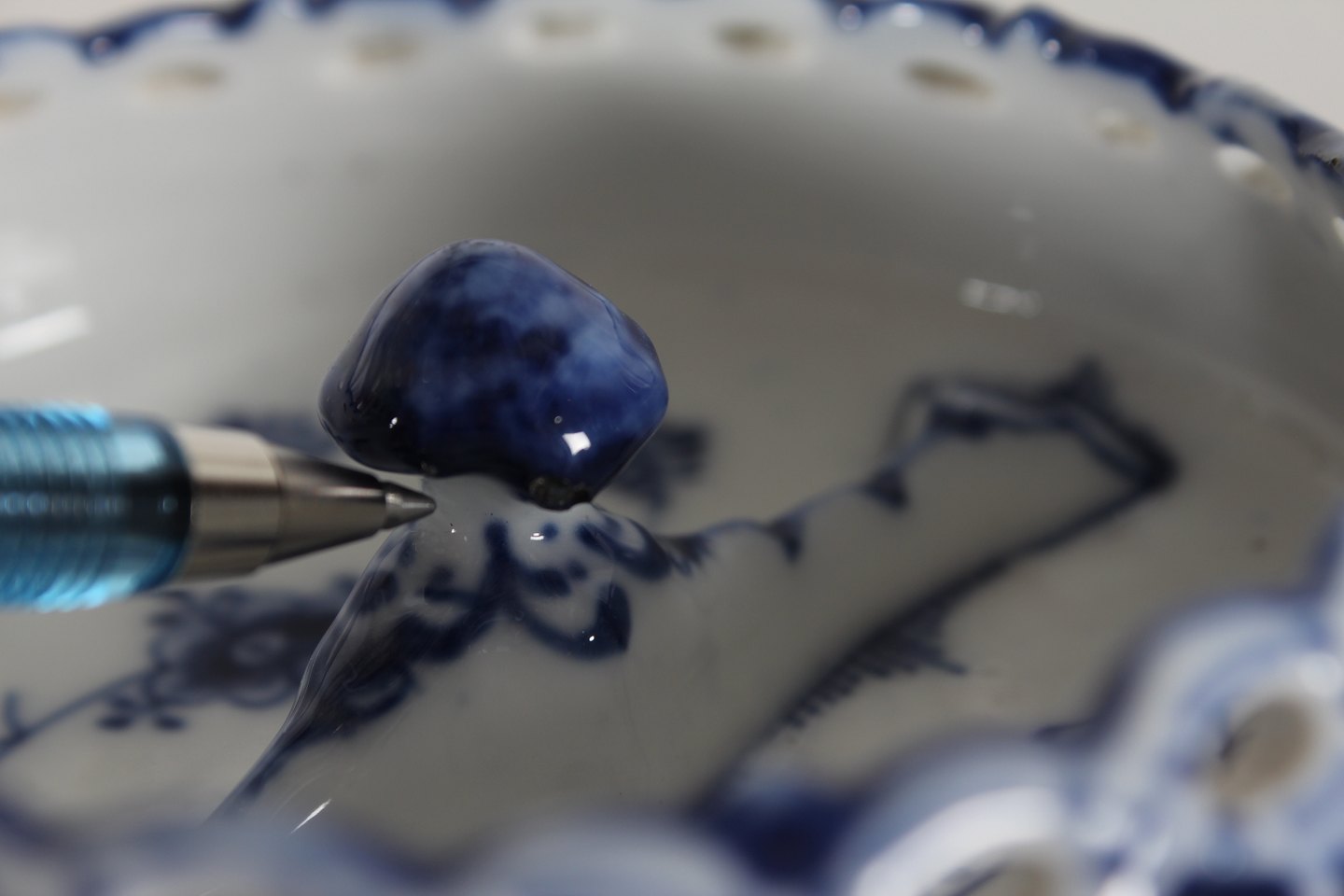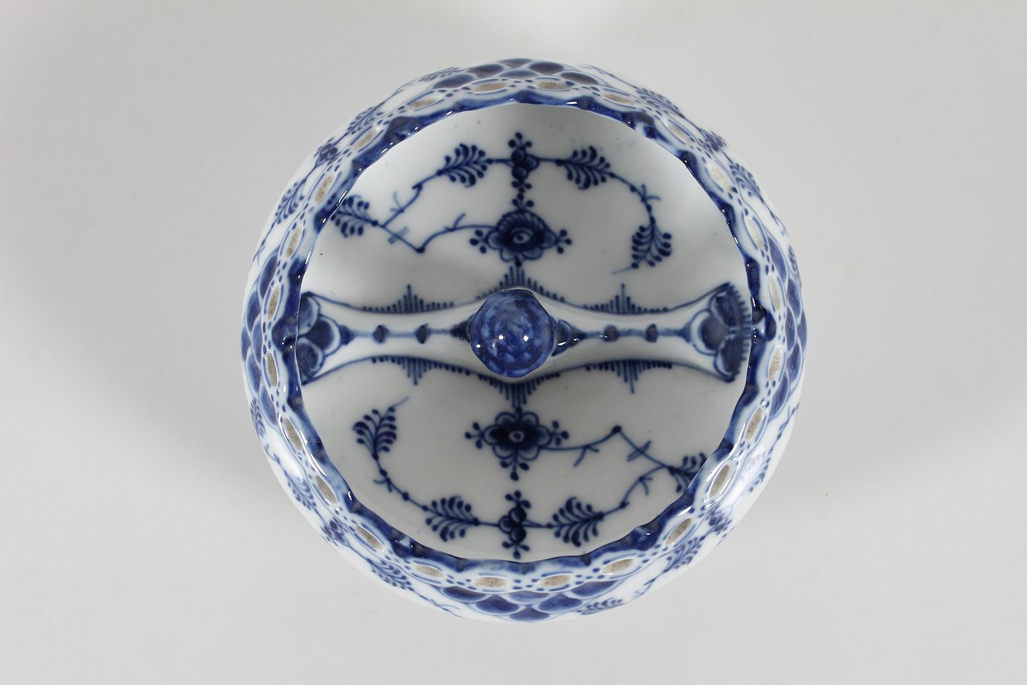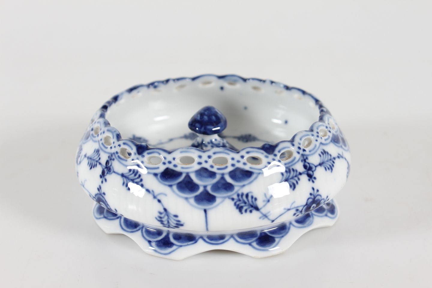 Royal Copenhagen Musselmalet Helblonde Rund asiet m/bærebjælke nr. 1/1001 Diameter 12 cm 1. sortering, fin stand m/lille uregelmæssighed i glasuren under blå knop
