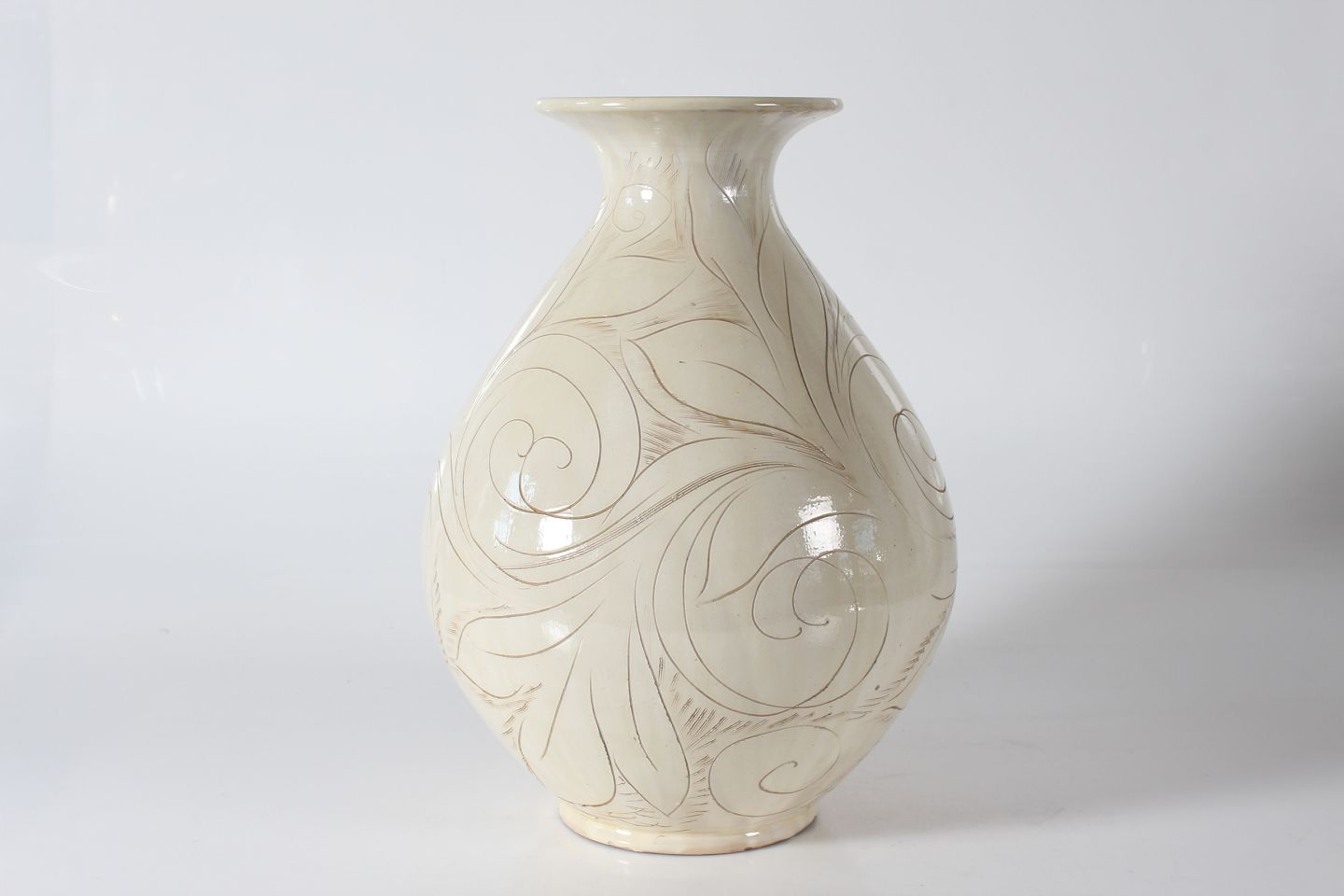 Herman A. Kähler Stor gulvvase med sgrafitto dekoration tilskrevet Julie Kabell Sign. HAK for Herman A Kähler Højde 49 cm Diameter 35 cm Fin stand - se billeder af små glasurafslag samt gl. afslag på bunden