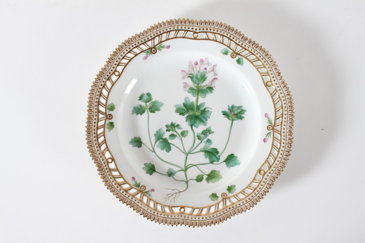 Royal Copenhagen Flora Danica Dinner plate with full lace no. 20/3553 Decorated with flower "Lamium intermedium Fr" and stamp from the period 1923-34 Diameter 25,5 cm Factory 1 without chips or cracks