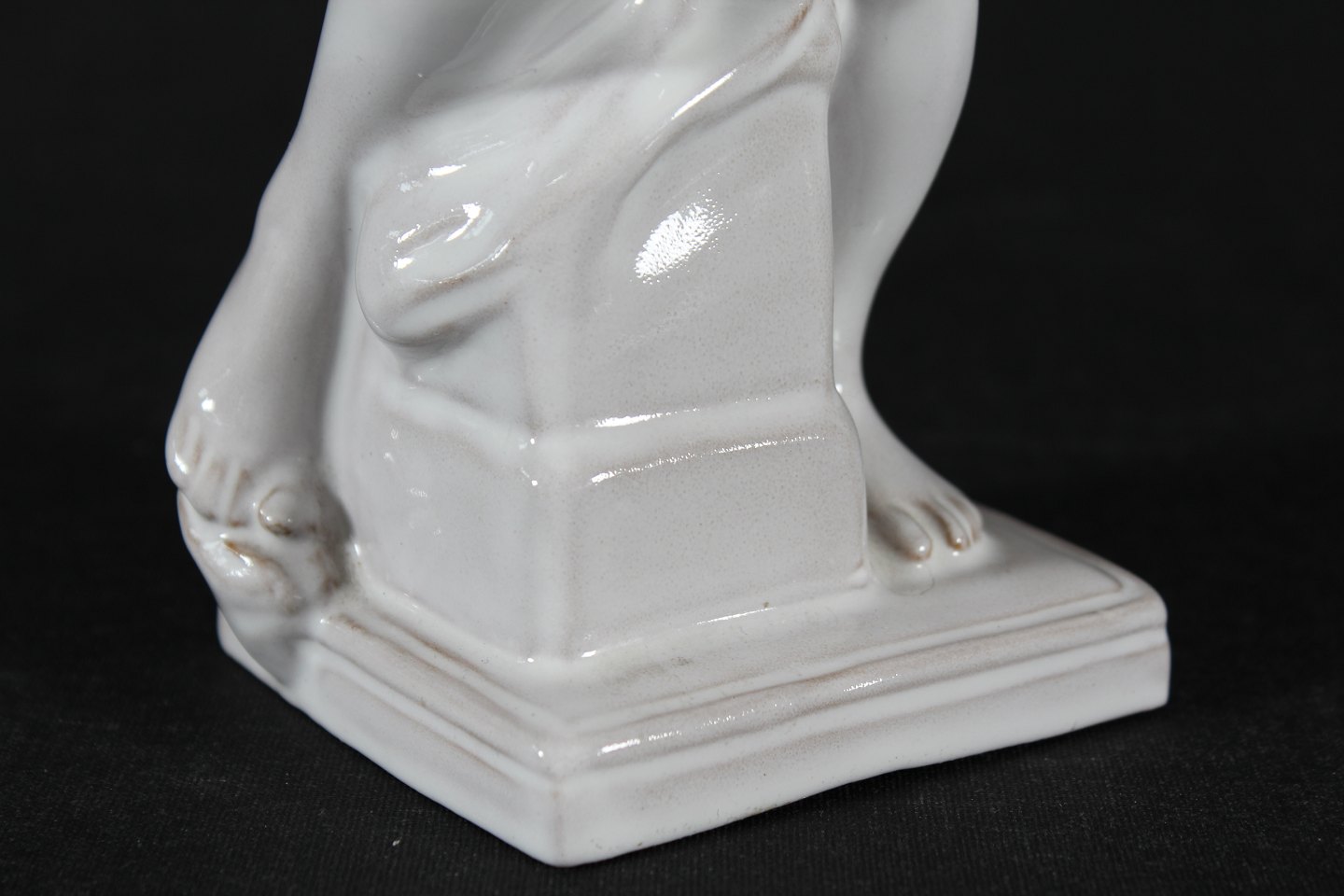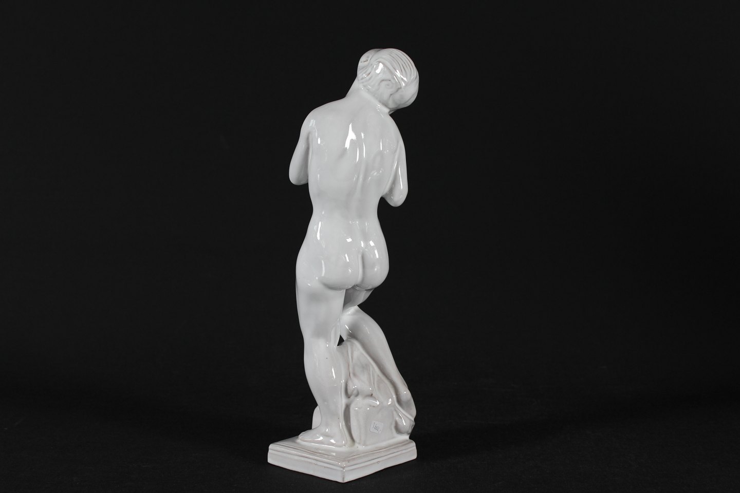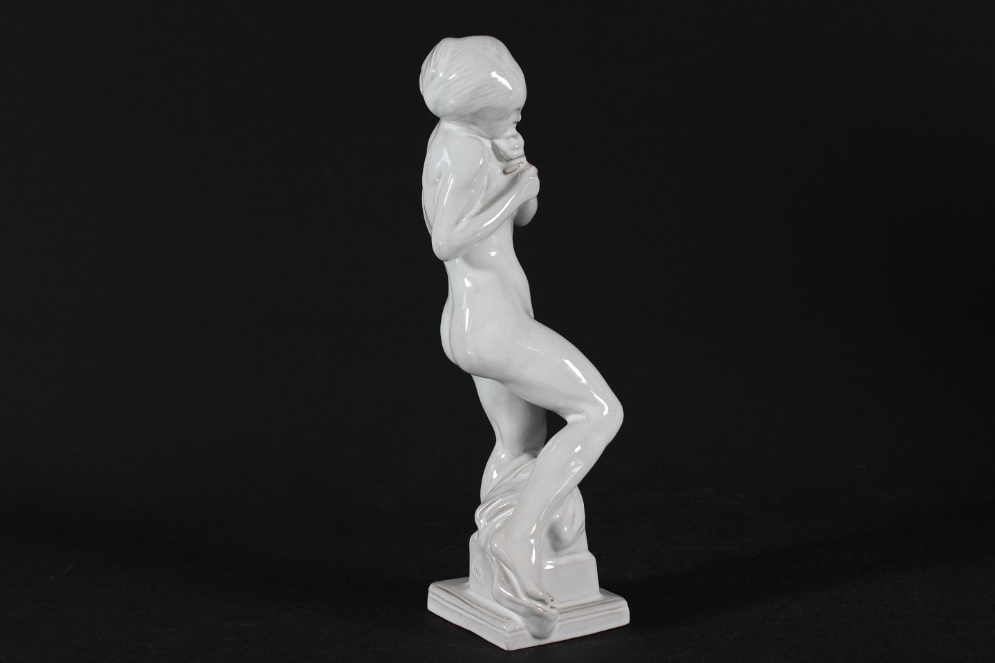 Kai Nielsen (1882-1924) Eva m/æblet figur fremstillet hos H. A. Kähler af keramik dekoreret med hvid let transparent glasur Sign. i bunden HAK for Herman A. Kähler Højde 30 cm Fin stand uden skader