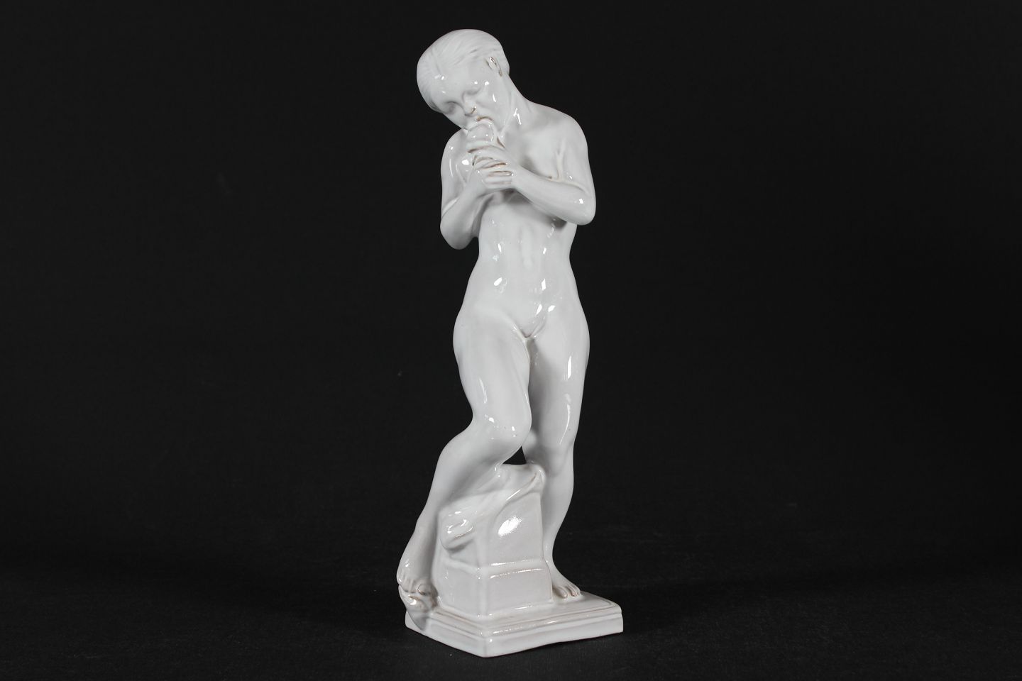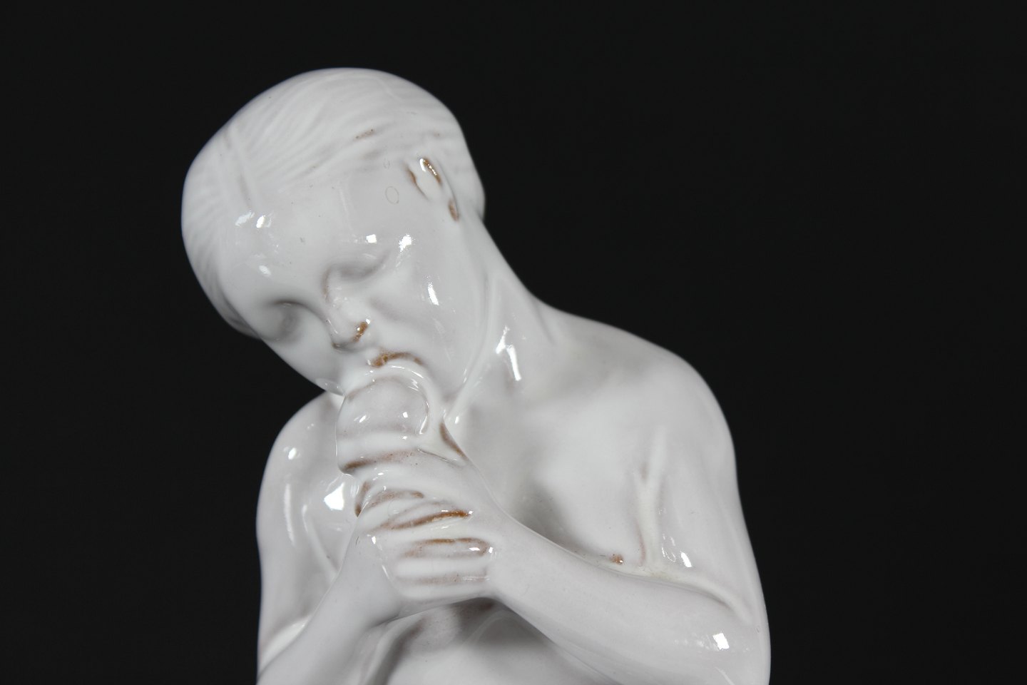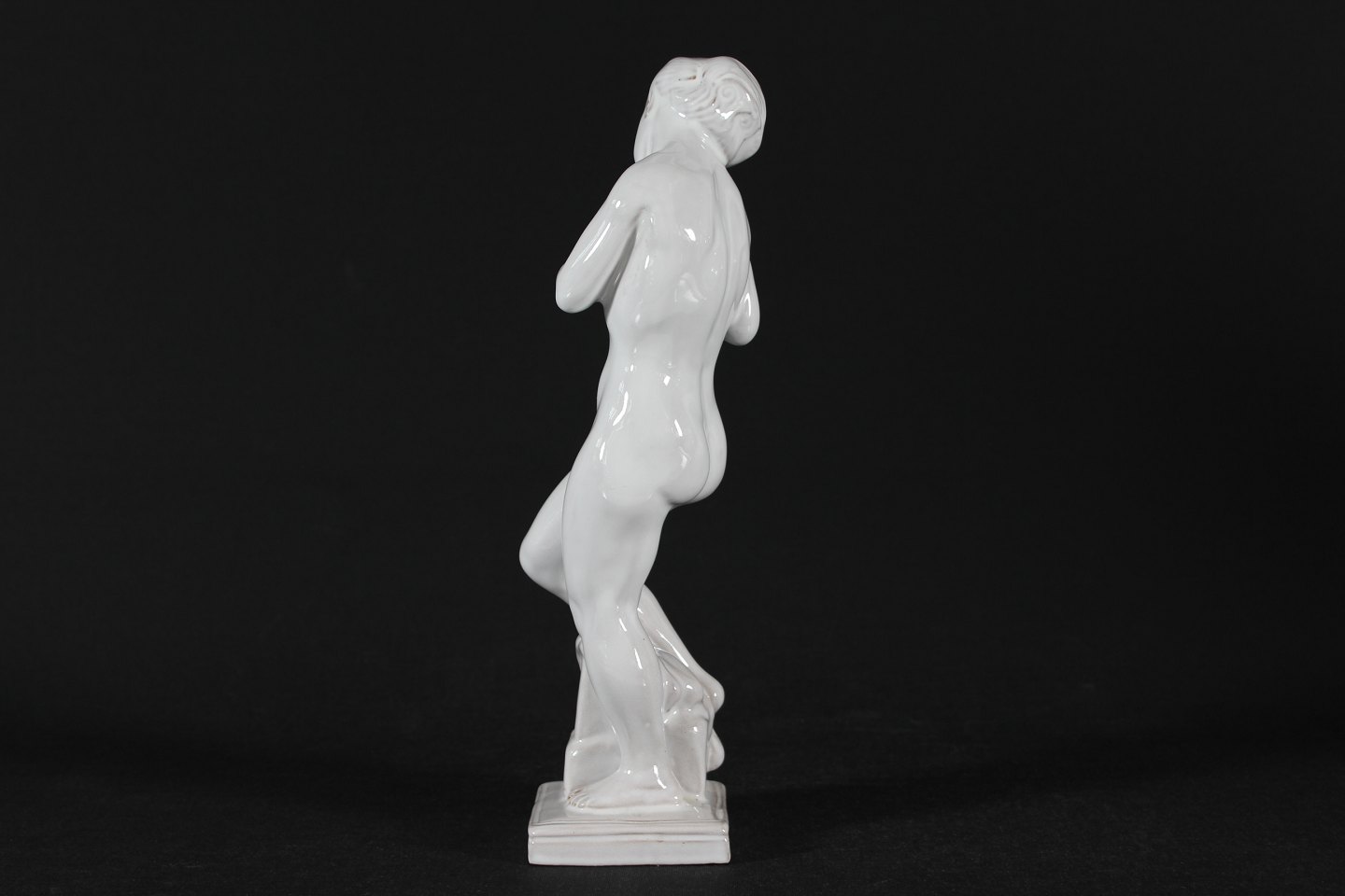 Kai Nielsen (1882-1924) Eva m/æblet figur fremstillet hos H. A. Kähler af keramik dekoreret med hvid let transparent glasur Sign. i bunden HAK for Herman A. Kähler Højde 30 cm Fin stand uden skader