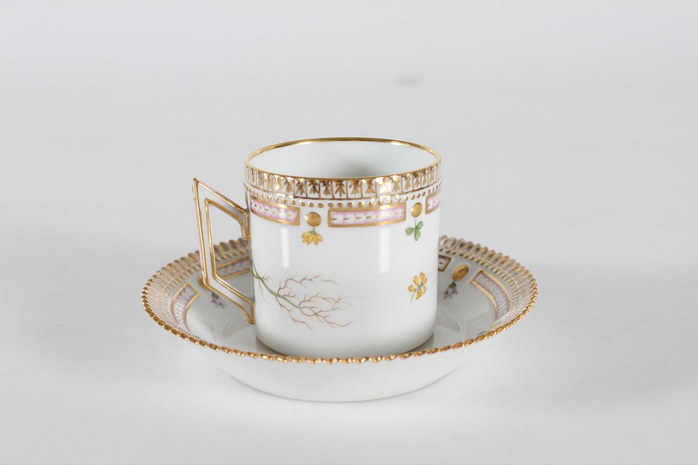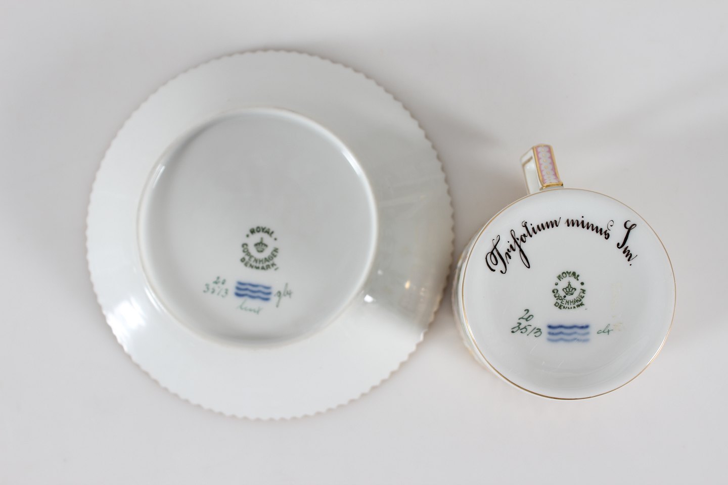 Royal Copenhagen Flora Danica Chokoloadekop 20/3513 dekoreret med Trifolium minus Sm. Med stempel fra 1961 Højde kop 6,5 cm Diameter kop 7 cm Diameter undertallerken 14 cm Fin fejlfri 1. sortering