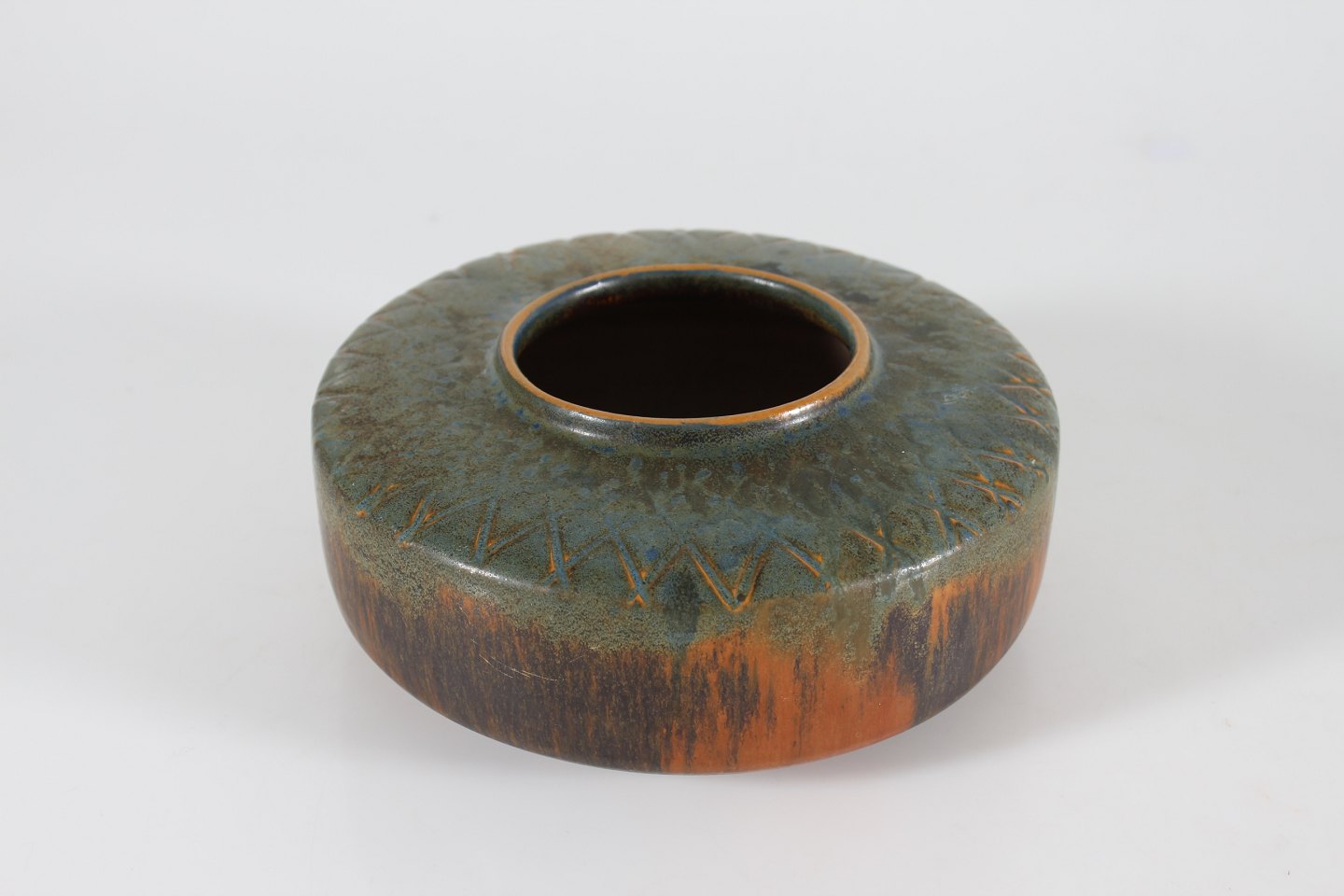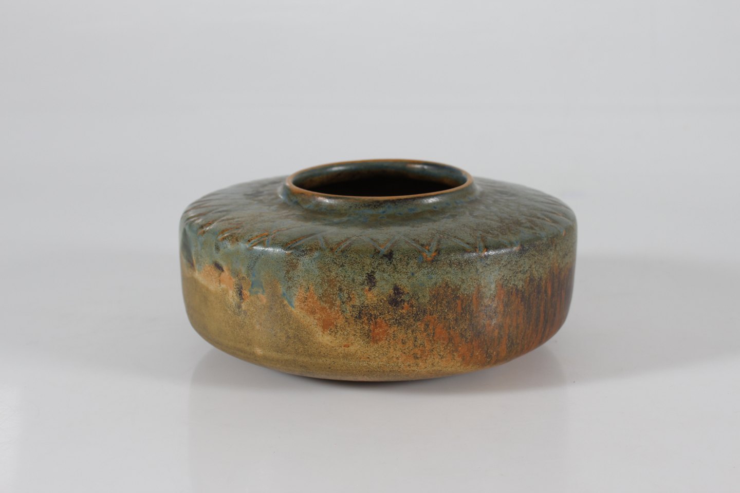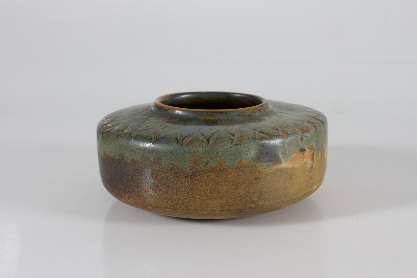 Bred og lav vase af keramik fra 1950-1960