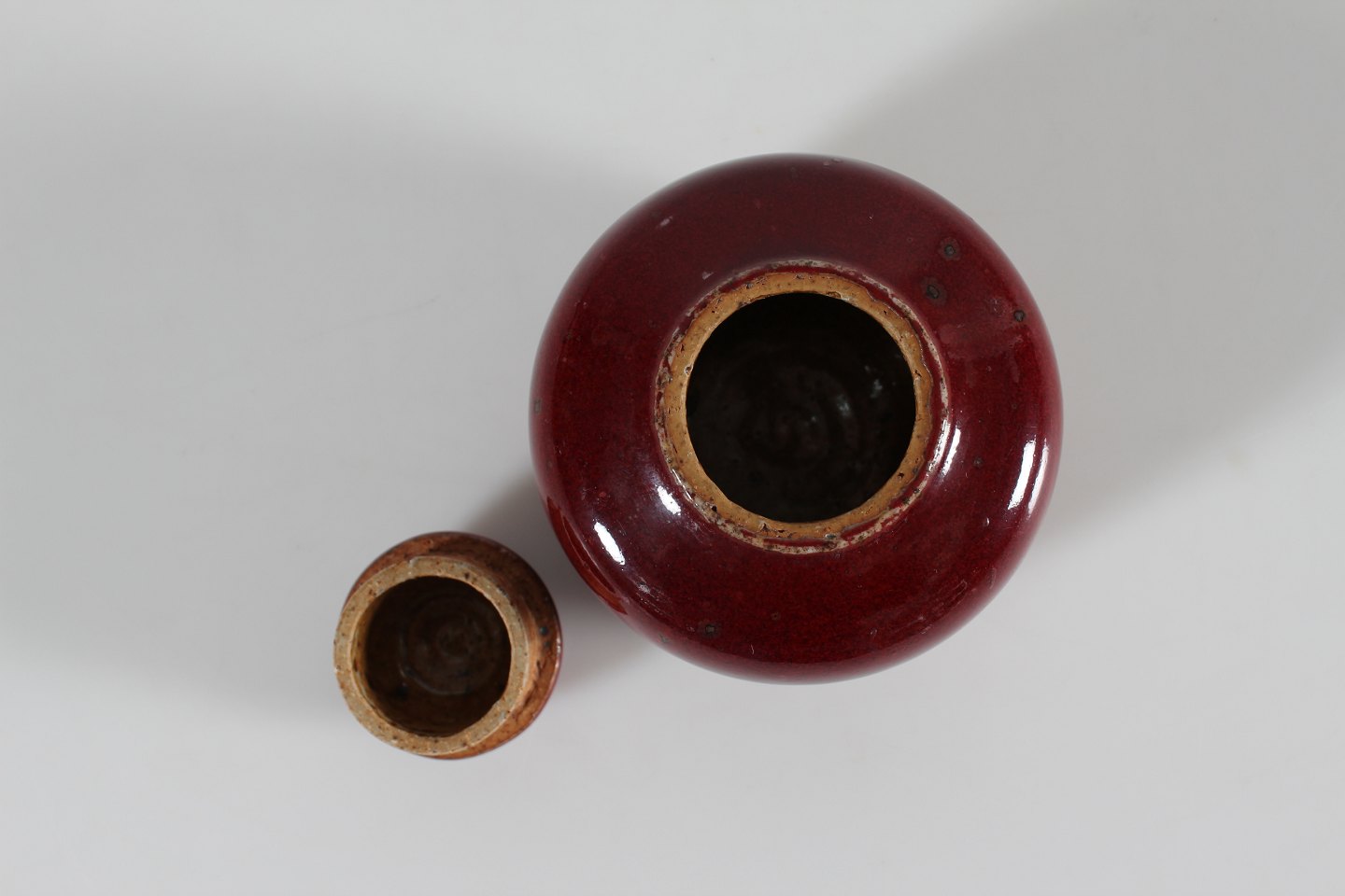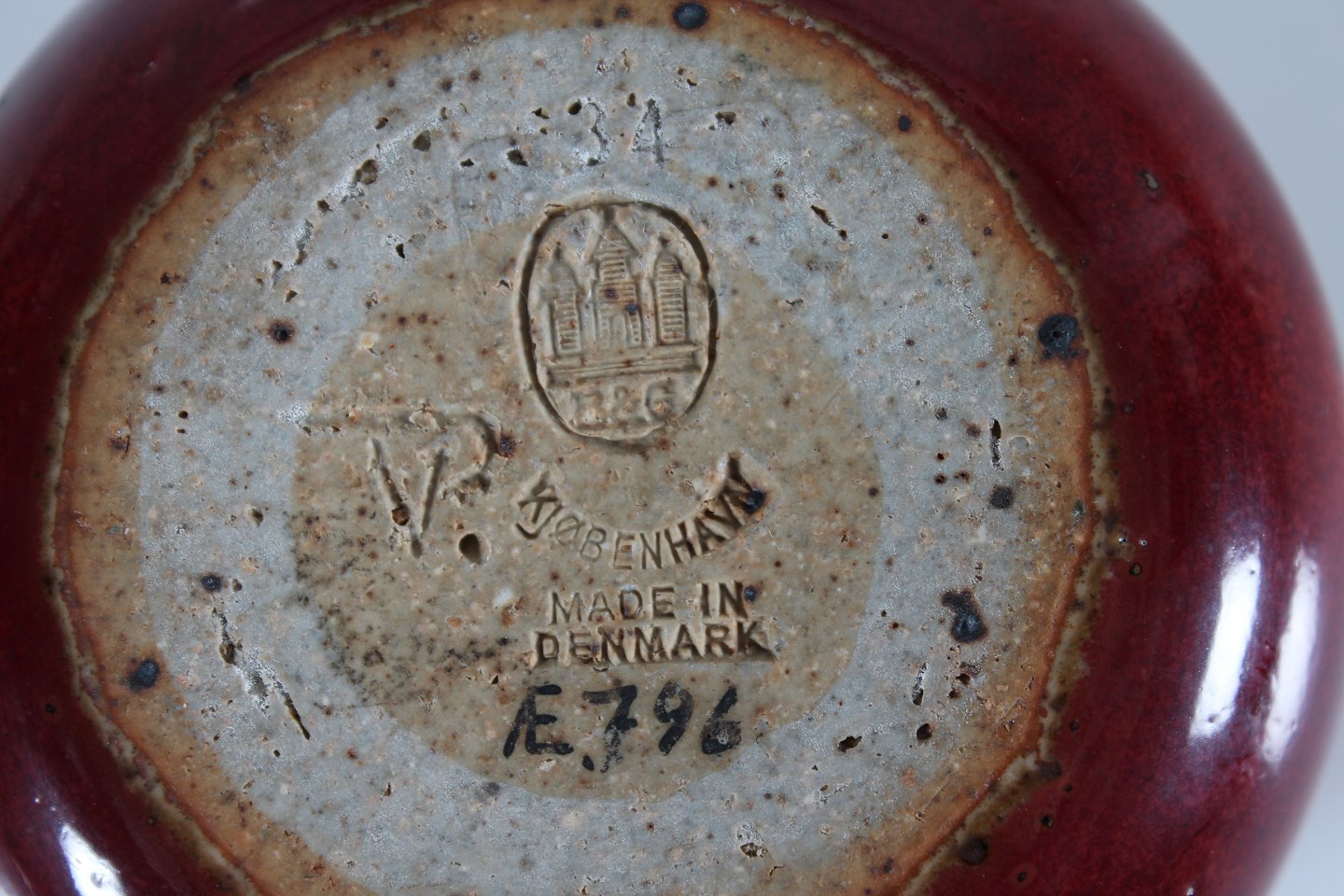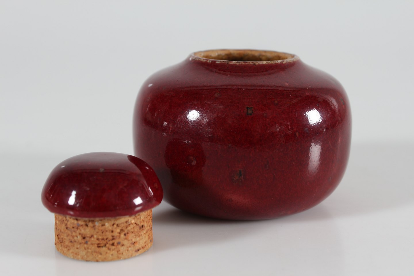 Bing & Grøndahl Valdemar Pedersen (1906-81) Rare small lidded jar of stoneware with glossy oxblood glaze With stamp from the 1950s Height 8 cm Diameter 9 cm Mint condition - 1. quality