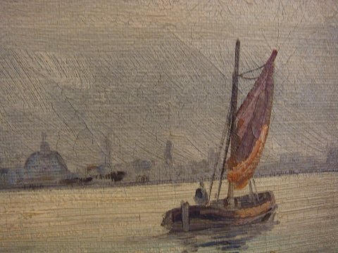 Marine paintings sail ship outside København.Sign. Arup Jensen (born 1906) Height 75 cm frame (without frame H: 58 cm) Width: 63 cm frame. (Without frame B: 45 cm)
