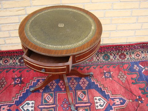 English Mahogany Lamp Table with 2 skuffer.Ben mounted BLøvesko with hjul.Diameter 50 cm. Height: 59.5 cm