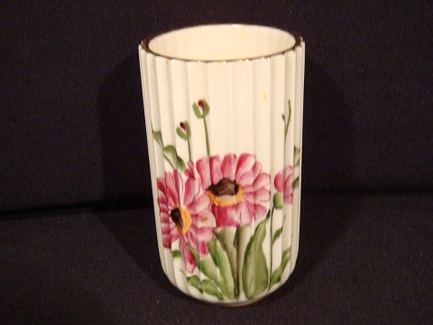 Lyngby vase bemalet med blomster. Højde: 12 cm