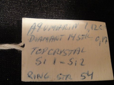 Diamonds 14 pcs total of 0.17 ct Top Crystal clarity SI1 - SI2 Aqumarin approximately 1.2 ctringstørelse: 54(SOLD)