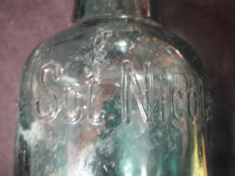 1/4 l Mineralsvandflaske med patentprop inskr. SCT.NICOLAUS KILDE BRØNDANSTALT AARHUS