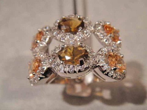 med Røgfarvet krystal krystaller omkranset af talrige brilliant slebet krystaller.