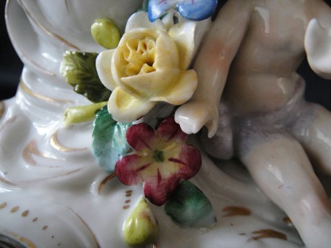 Pragt Opsats i 2 dele med sidende puti og rigt dekorert med pousserede blomster og blade.