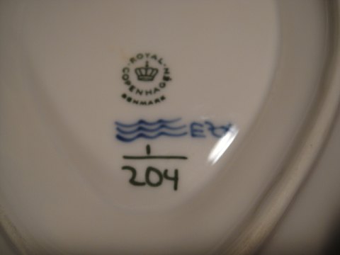 Fluted Plain. Gravy Boat on solid dish. Royal Copenhagen RC No. 1 - 204 First sort Price USD 172, -