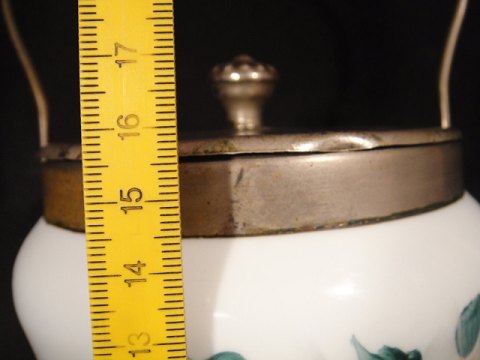 Biscuit bucket opalineglas. and painted roses. Funen Glassworks. price $ 164,-