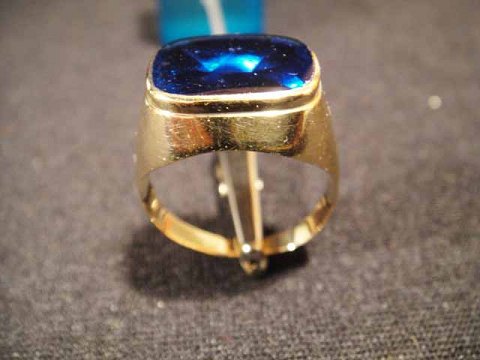 Herre guldring med blå turmalin. str.61 D. 20 mm. Guld 8k HSHS