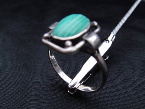Nouveau Ring with malachite. Silver 830s Ring size. 67 Price. USD 139,- item number 164365