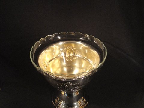 Frugtopsats in silver spot with glass bowl from Holmegaard.