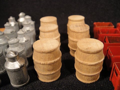 Diverse tekno øl kasser, mælkejunger, tønder, muresten,til tekno biler