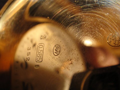Double-encapsulated Mens Pocket Watch. 14k Gold 585 From year 1922 nice and neat stands.