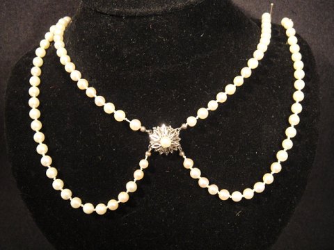 Perlekæde Dobbeltradet i forløb med 14k hvidguldlås med perle i midten