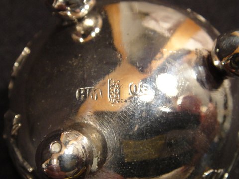 Silver salt cellar with glass.