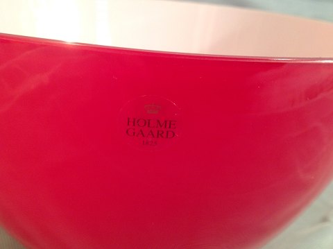 Holmegaard繭skål.RødGLAS udvendig MED hvid乳白色GLAS indvendig。