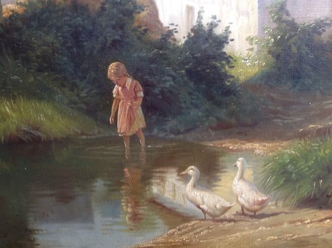 女孩涉水與鵝湖。