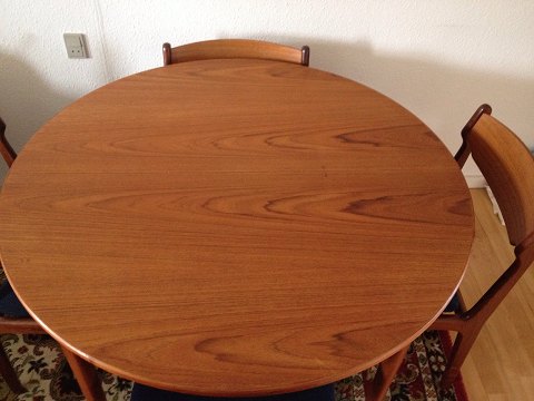 Round teak dining bord.med 4 chairs.