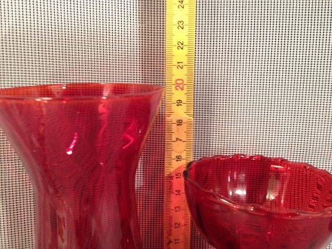 2 stk. i rødt vreden glas. Højde: 19,8 cm og 20 cm. cm.
